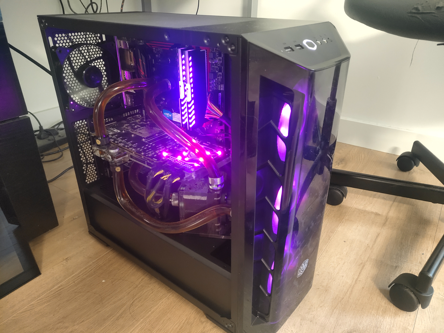 SPEC: MSI B450 Gaming Plus motherboard AMD RYZEN 5 2600x (Phanteks 水冷頭) Sapphire Vega 56 8GB (Bykski 全覆蓋水冷頭) Kingston HyperX Fury 16GB 2666MHz DDR4 RAM Crucial 500GB NVME M.2 SS ...