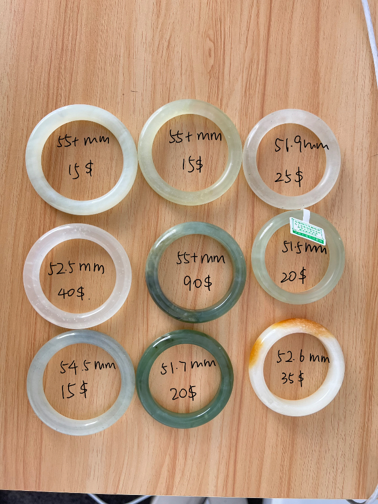 出一出岫玉手镯,圈口价格如图所示,手串10刀/串,邮编5022 自取。