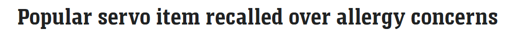 据悉,澳大利亚一款常见食品因过敏原问题被紧急召回,该产品在全国加油站和便利店销售。 FSANZ敦促消费者立即退回产品获取全额退款,并建议担忧健康者寻求医疗建议。此次召回代码为3242(包装背面标注)。 图 ...