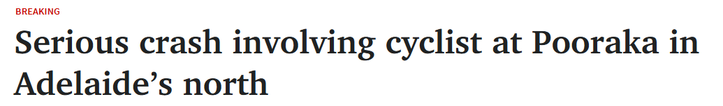 据报道,阿德北部Pooraka清晨发生一起涉及自行车骑手的严重碰撞事故。 包括警方和MFS在内的紧急服务部门于清晨6点前赶到了Bridge Rd与Beovich Rd交叉口。 多辆紧急服务车辆停驻在附近,警方警示带横跨草坪 ...