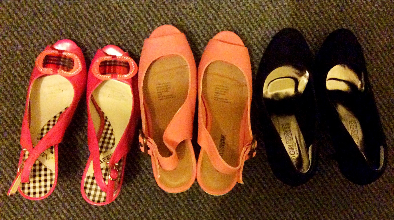 一双全新35 码枚红高跟鞋。牛筋底。无瑕疵。$20。只要合脚诚心拿走。价格可议。 一双36码粉色坡跟鞋(本人35码可穿)。就穿过一次。$ 10。 一双36 码黑色高跟鞋。全新。就试过一次。$ 10。 只要合脚。价格可再低 ...